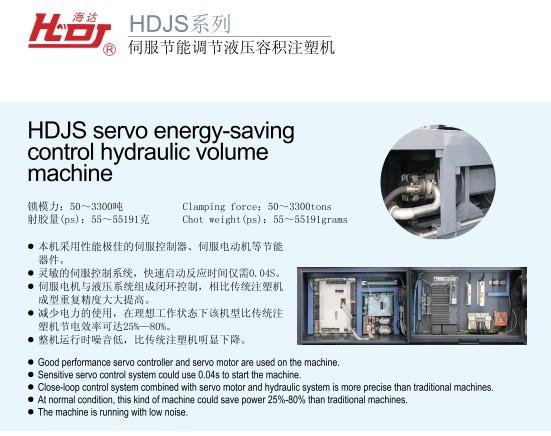 在 HDX 高(gāo)品質的(de)機械(xiè)結構基礎(chǔ)上,動力驅動係統采用交流永磁同步伺服電機驅動高性能油泵,提高(gāo)了執行機構運行的壓力(lì)和(hé)速度的分辨率及精度,提高了塑化轉速和背壓的 精細分辨(biàn)率及計算精度,降低了熔融料的軸向溫差。高剛度、高運行重複精度(dù)、高精度低壓護模(mó)性能的肘杆合模機(jī)構,具有對精密模具的優異保護性能,具備高精度 穩定運行的性能。在理想工作狀態下,成型製品比三相異步電機驅動定量泵係統節電 80% ,低能耗運行顯(xiǎn)著降低了噪聲。創新的(de)伺服控製係(xì)統,提高(gāo)了係統的動態反(fǎn)映性能,使流量及壓力的轉換得以(yǐ)快速平滑的過渡,注射性能得到提高。